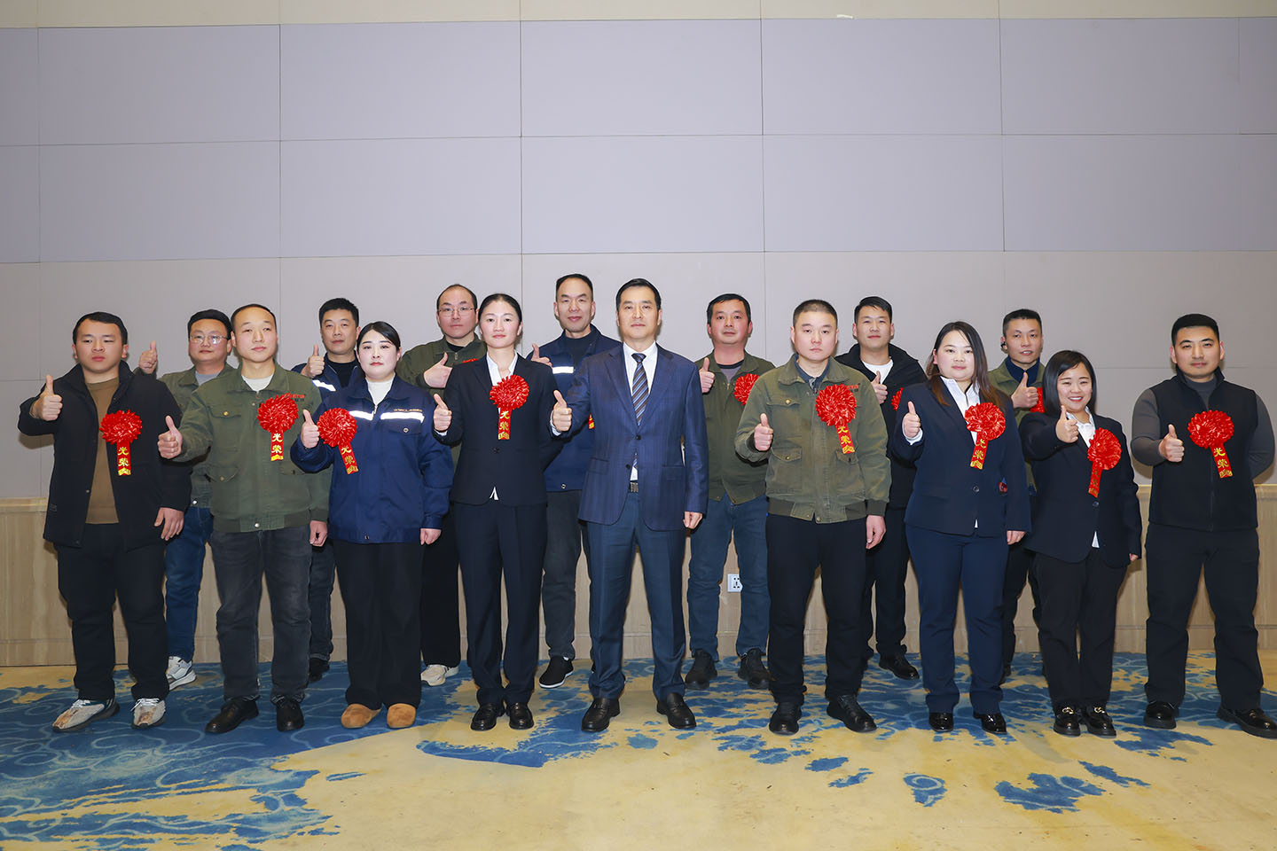 表彰大会在庄严热烈的氛围中拉开帷幕。公司对2025年度涌现出的先进集体、先进个人及为公司发展做出贡献的老员工进行了隆重表彰。获奖代表们依次上台领奖,会场掌声不断,气氛热烈。